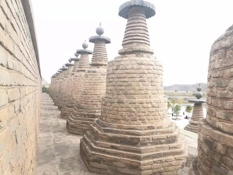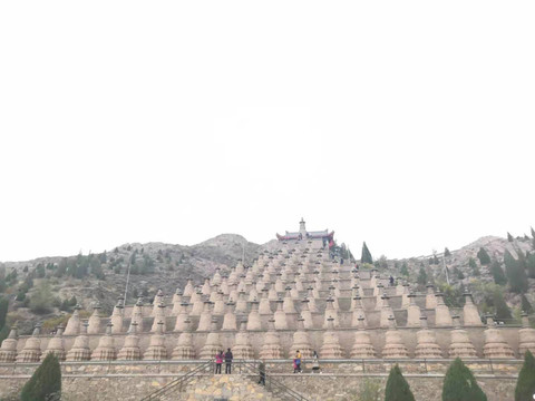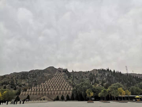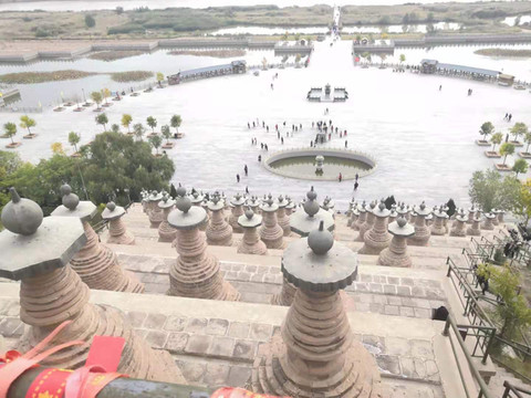 一O八塔 要是晴天的话应该会更好看···靠着黄河还有贺兰山脉