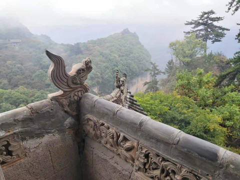 十月初就比较冷了,上山最好多穿点,下雨了以后上山的台阶不是很好走,就很滑····