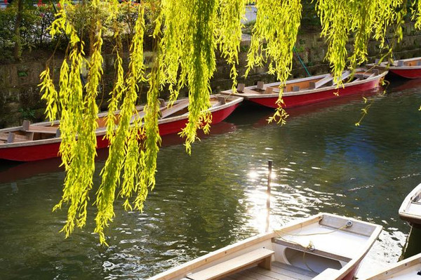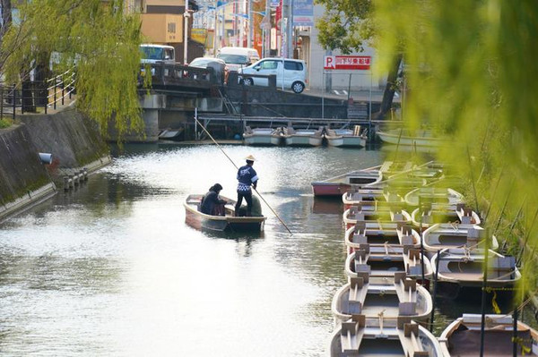 舟游柳川是最好的方式,指的是乘坐小船沿着河道的游历,有数条航线。小船形似五道鱼,头戴斗笠、用竹篙撑船的船家唱起船歌,颇具地方风情。柳川人为那些文人立下了32块文学碑——诗碑、歌碑、句碑,都立在河道的岸边,船家会遥指它们向游客介绍。如果时间和体力允许,建议沿着河道边的“水边散步道”,再来一次文学散步。