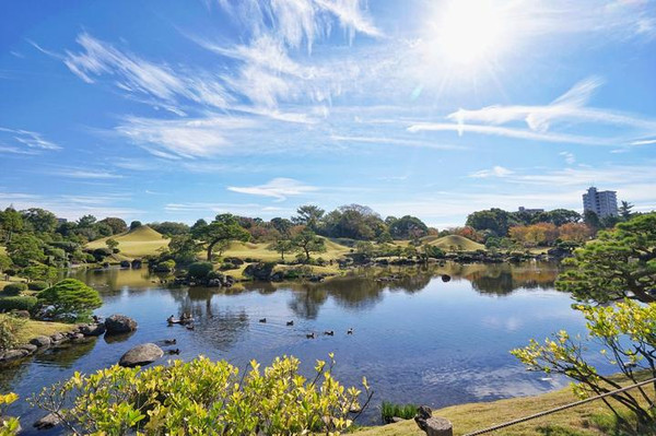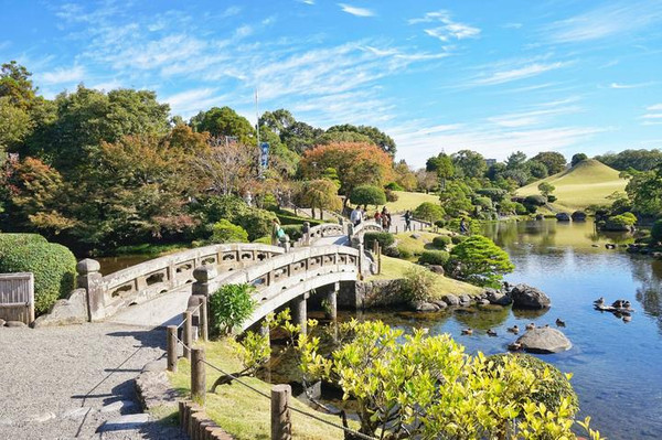 品尝过熊本拉面,来到风景优美的水前寺公园,这里是从1636年开始历经80年所建造而成的回游式庭园。园内以潜流水涌出的水池为中心,假山、浮石、松树更是将园内之美升华得淋漓精致。成趣园内围绕着园中央的池水建造,北侧有座神社,南侧有表演日本传统舞乐——能乐的“能舞台”,两者均建于明治时期。