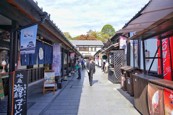 在城彩苑,可以感受到满满的熊本魅力。当然各地的美食也聚集于此,可以在用餐处惬意品尝美食,也可以边走边吃,欣赏城下町的怀古风情。这里有能体验感受熊本历史和文化的“涌涌座”和供应熊本当地小吃及土特产的“樱之小路”。园区内重现了江户时代的城下町街景,在这里漫步别有一番情趣。