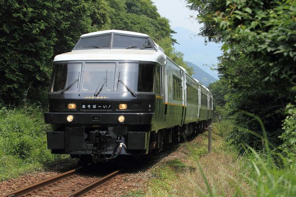 在JR九州的众多观光列车中,最受欢迎的便是“阿苏男孩”。这个去往阿苏的列车车身上,印满了原创可爱的狗狗“小黑”kuro的造型。