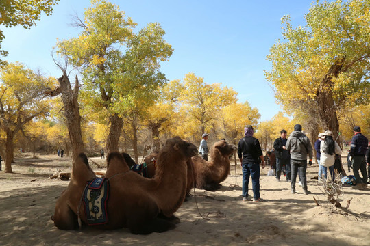 10月3-5日是7日6晚跟团游最精彩的三天,3日行游黑城弱水胡杨风景区。弱水又名黑河,发源于祁连山脉,到甘肃金塔折北而上,流入内蒙古额济纳的居延海,全长800多公里,因河水赢弱不能载舟而得名。这里生长着誉满全球的世界珍奇遗产胡杨,它是世界仅存的三片胡杨林之一,也是保存最为完好的一片胡杨林,成为立于巴丹吉林沙漠西边的一道屏障。中国酒泉卫星发射中心就在弱水的下游、巴丹吉林沙漠边缘,弱水河是航天城赖以发展的源泉,也是额济纳旗居民的生命线。