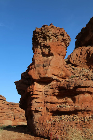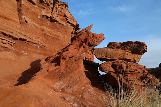 西部梦幻大峡谷地处内蒙古阿拉善左旗敖伦布拉格镇境内,融雅丹地貌和丹霞地貌为一体,记录了百万年来地貌的变迁及地质的演化过程,风力和地质的相会作用形成了沙漠、戈壁为主体的地质景观。大峡谷由深红色的沙石构成,全长5公里,漫步其间,峰回路转,移步换景,仿佛进入梦幻世界。神奇的景点主要有七彩神山、人根峰、母门洞、狮身人面像、博士论坛等。不知多少年前,敖伦布拉格牧民在七彩神山四周放牧时,意外地在山谷中发现了一樽石柱和一处石洞,石柱巍然屹立,直指苍天,酷似男性生殖器;石洞形似女性的生殖器官,洞内常年温润。它们唯妙唯俏,吸引了国内外许多性学家。