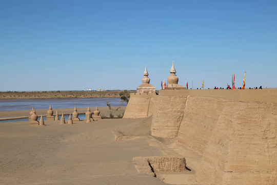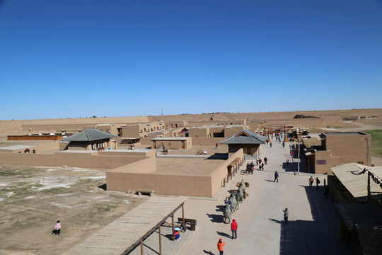黑水古城是古丝绸之路现存比较完整、规模宏大的古城遗址,始建于西夏王朝公元九世纪,1226年被蒙古大军所破,时称哈日浩特,蒙语意为“黑城”。元朝在这里设立亦集乃路总管府后,成为漠北到中原的交通要道和重要驿站。1372年明朝攻破后随即放弃,让黑城在历史尘封中淹没了五百余年。遗址呈长方形,东西两面设有城门;四周的城墙已有半数为流沙掩埋,西北角上有一座覆钵式喇嘛塔,西南角城外有一座伊斯兰教拱北;城内官署、府第、仓敖、佛寺、民居和街道遗迹仍依稀可辨。黄土磊积,风蚀残融,黑水古城经历了岁月的沧桑,带着风沙的刻痕,在茫茫戈壁沙漠依然耸立。如今,景区在遗址附近复建了一座仿真黑水古城,登上城墙漫步,抚今追昔,更加感恩生活,怀念先人。