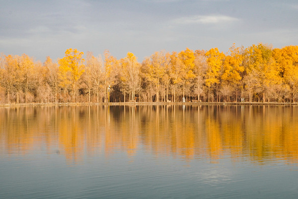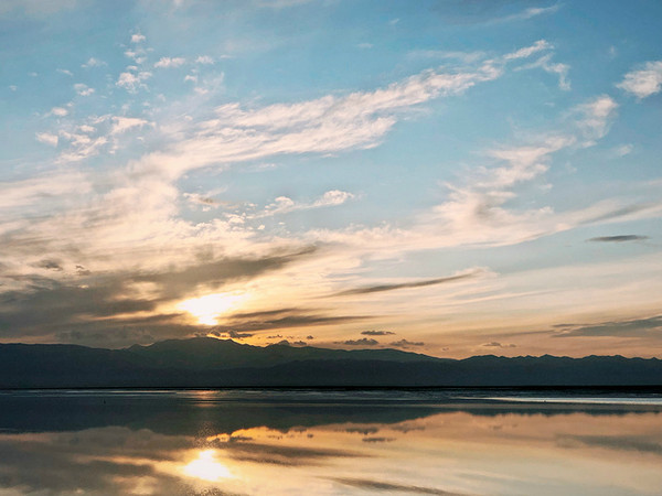 在我们快要离开的时候,在那一瞬间太阳就出来了。顷刻间,整个湖面就改变了颜色,金黄的湖面碧波荡漾,变幻的光与影,交替的色彩,成就了居延海这样完美的高光时刻。