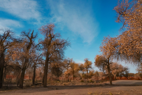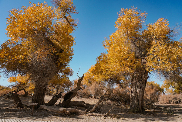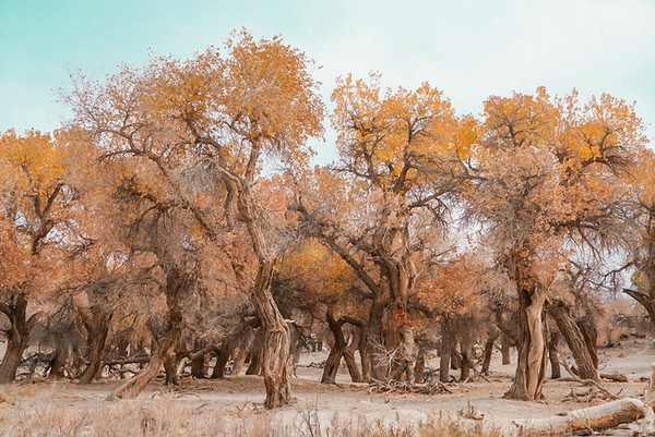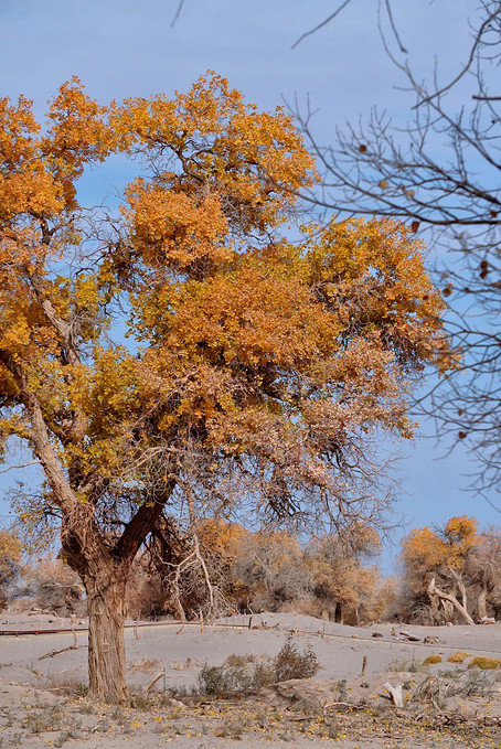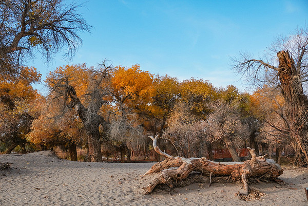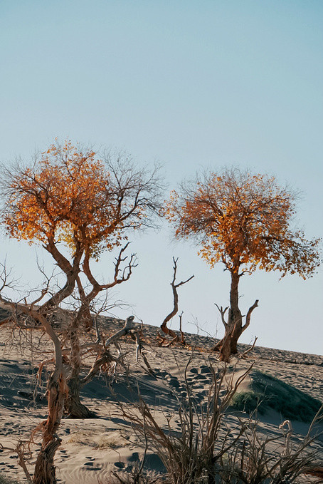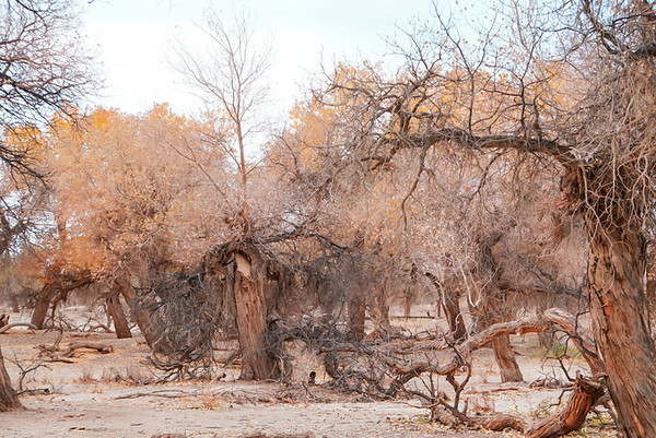 既然上面已经看过胡杨盛放的样子,那也一起看看胡杨凋落的样子吧。