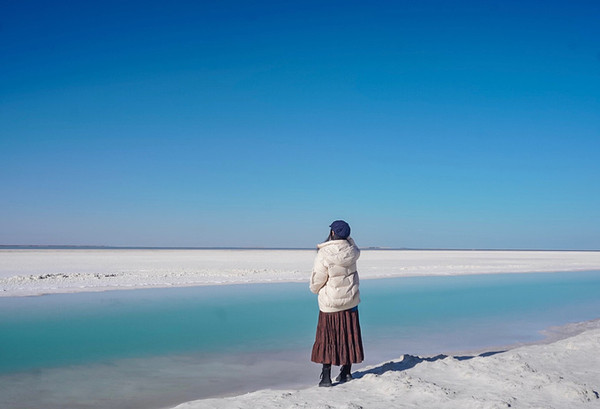 就算冷得发抖,眼睛还是一直看着远方的地平线,看它慢慢地露出一抹淡淡的绯红。这一刻的居延海是安静的,安静得只听到寒风的声音和海鸥的叫声,这一刻的居延海又是动人的,让人忽略了寒风带来的寒冷,站在居延海边,静静地等待日出的到来。