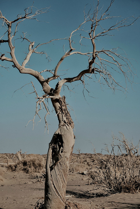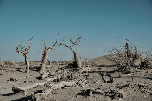 其实胡杨一年就只绽放那二十几天,这个时候的胡杨林景区在热闹一番之后,渐渐归于平静,景区里看到的是寥寥无几的游客。风卷云,黄沙地,胡杨叶开始凋落,只剩下苍劲的树干,看似朽木却屹立不倒的胡杨树,更显得沧桑。此刻的胡杨林是别样的景致,别样的粗犷。