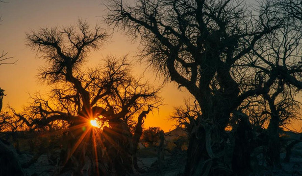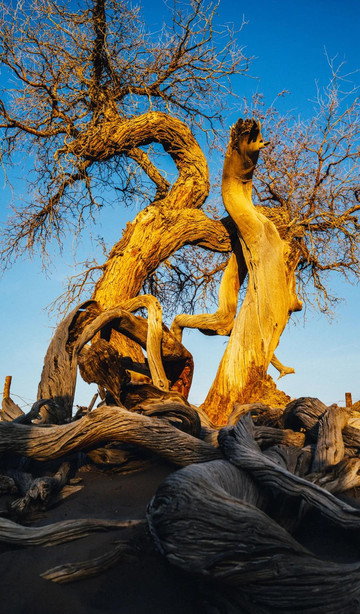 胡杨长得并不美观,也算不上挺拔,却是大漠的灵魂。历经千年荒漠的摧残,也无怨无悔。