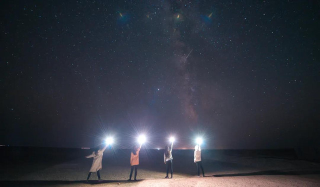 夜晚九点,大西北的天空早已星罗密布,银河璀璨,偶有几颗流星划过,更是让小伙伴们连连惊呼,就是喜欢她们这种没有见过世面的感觉,哈哈。