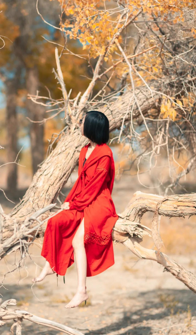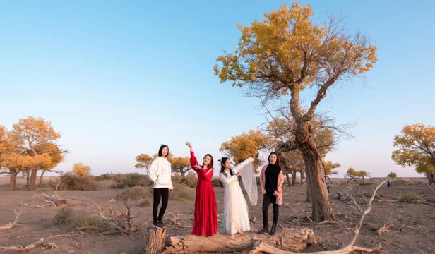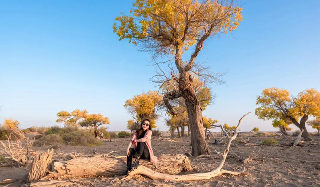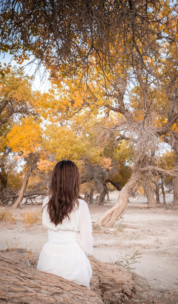 我们的谢仙女出门就是不一样,走哪儿都有造型师,再加上这么一大片胡杨林只有我们几位小伙伴,你们看她已经开心到模糊了。