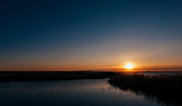 如果说居延海是"流动的沙漠”,它的日出飞放的霞光,水波倒影倦鸟低飞,却是丹青落笔飞雁,一幅流动的画。