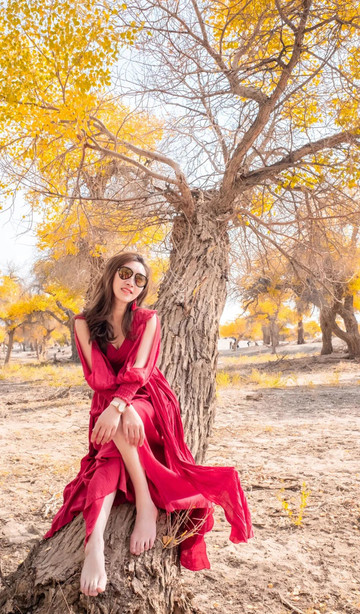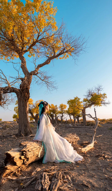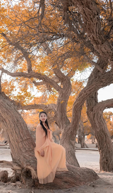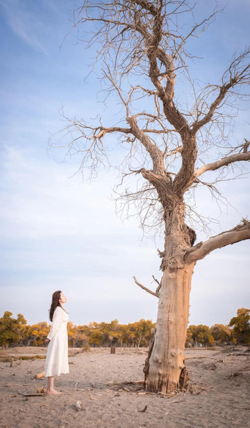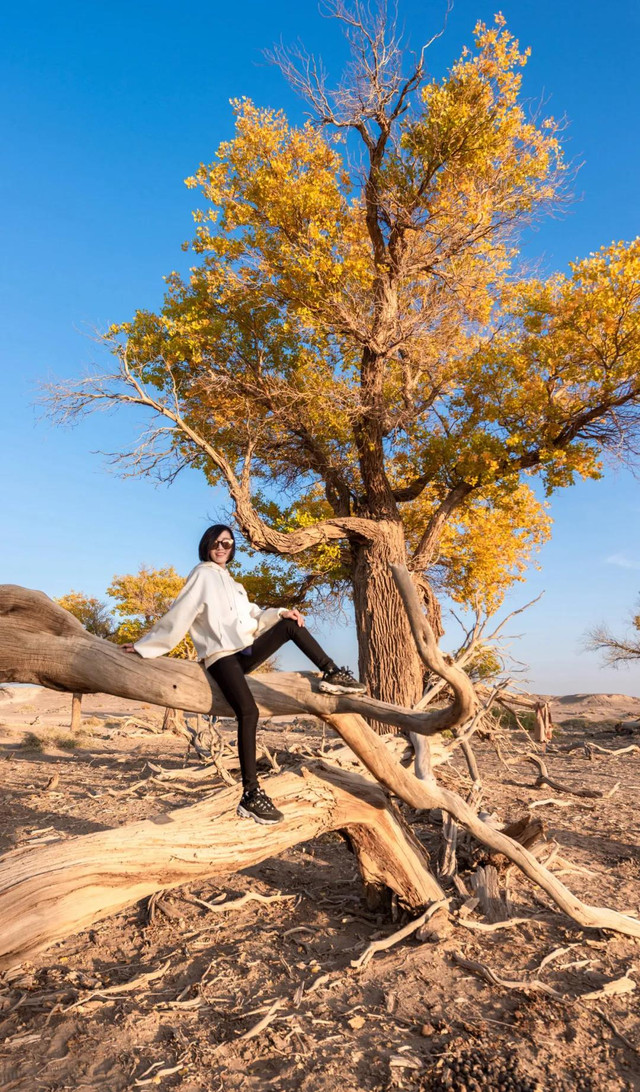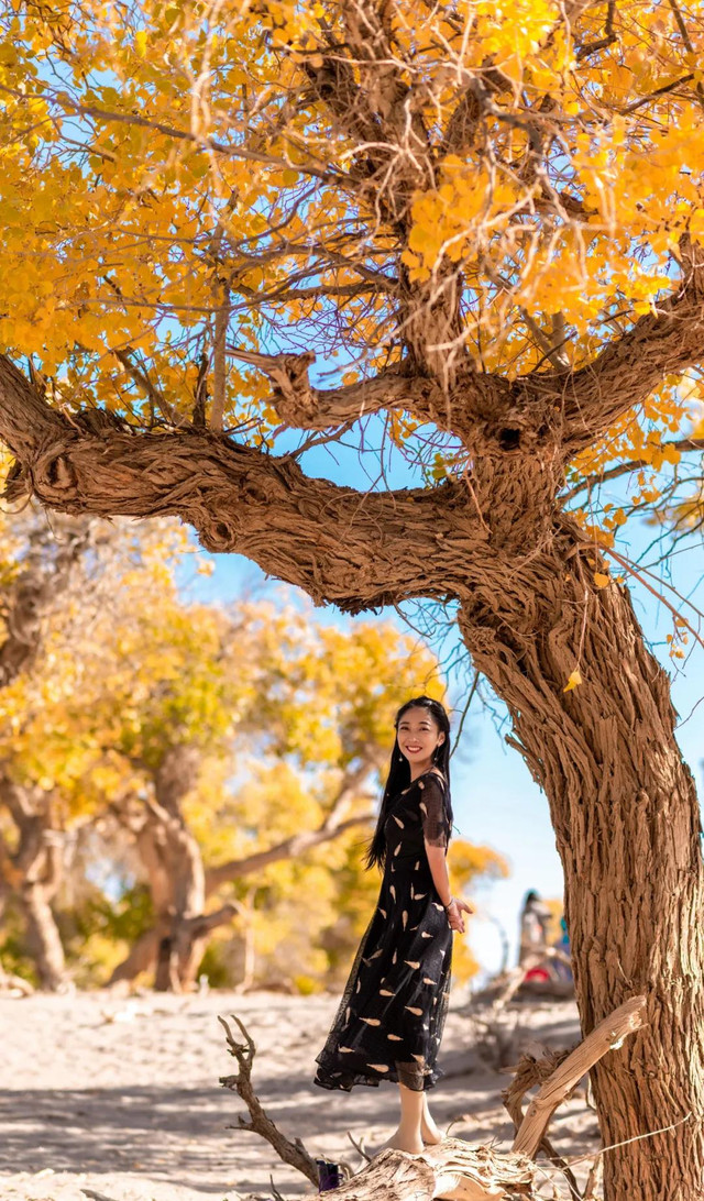 胡杨树下的谢仙女,拍完这张照她就拉着一旁路过的两位小姐姐开始安利我们,后来我的微信上又多了两位好友。