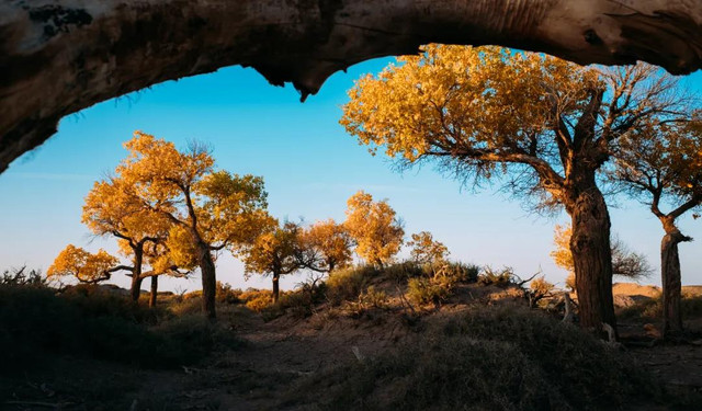 走进这片胡杨林仿佛时光也会变缓,只有随着这里的节奏,慢慢地走、慢慢地思考、慢慢地玩,享受真正的生活,放松身心。