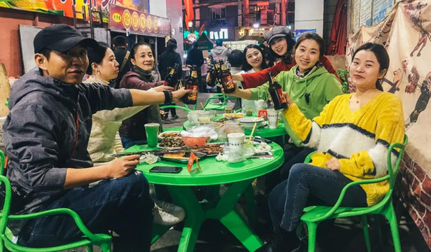 正宁路,每一次来兰州都必须要打卡的地方,坐在黄河边吃着西北烤肉串,喝点黄河啤酒,这才是旅行嘛。刚好在这里与付老司机的队伍汇合,巧了。