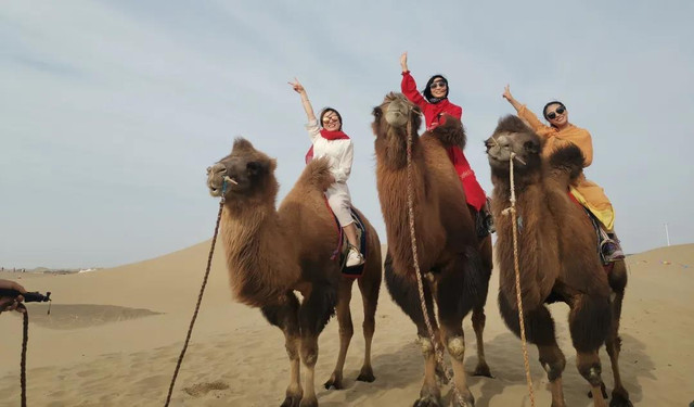 这几位小姐姐居然然我拿着相机追着骆驼给她们拍照,我觉得这确实有点过分了,果断拒绝,还好骆驼主人拿着手机给她们留了一张合影,你们说那一头骆驼更可爱呢?