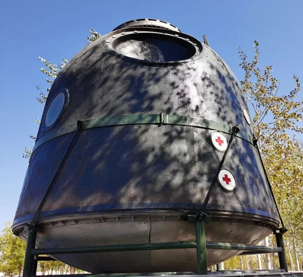 (额济纳街道上的神舟飞船返回舱模型)
