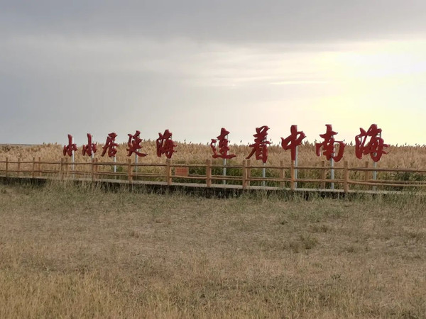 居延海芦苇丛中有几个红色大字——“小小居延海,连着中南海”,这也有一段往事: