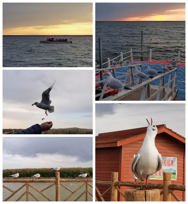 居延海有不少湖鸥,或追逐着客船,或列队于廊道,等待天降零食。