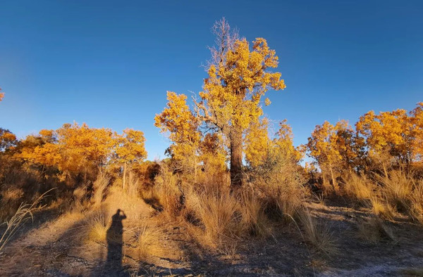 金秋胡杨林是这趟自驾途中最美的景观之一,也是额济纳之旅的压轴戏。我们即将返回河西走廊,出发之前要提一句这两日的另一场奇遇: