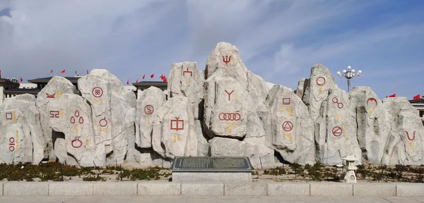 下图为蒙元文化广场上的马烙印。马烙印是草原游牧民族用来确定家畜所有权的标记,马烙印文化是蒙古族文化的重要部分。北方草原马烙印图案有万余种,大体可分为动物、植物、天体、生产生活、几何图形、文字、宗教等类别,蕴含了草原民族丰富的民俗思想和美学观念。从图中可以看到一些当今知名车标,均源自蒙古马烙印文化。