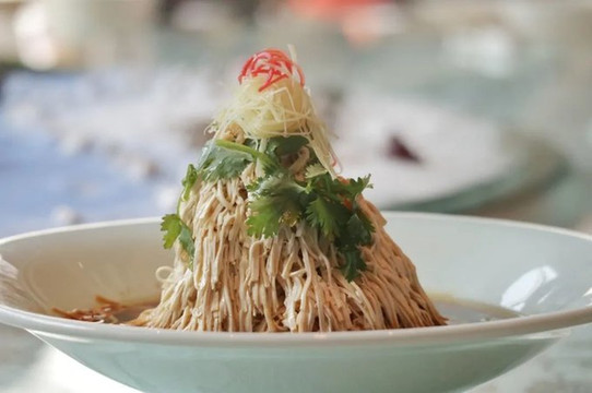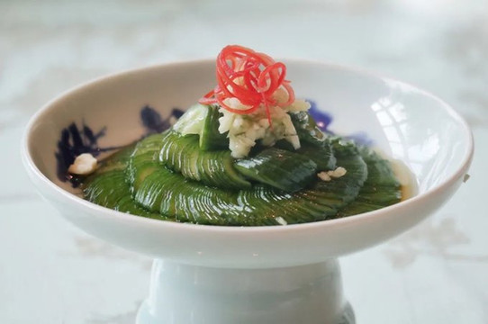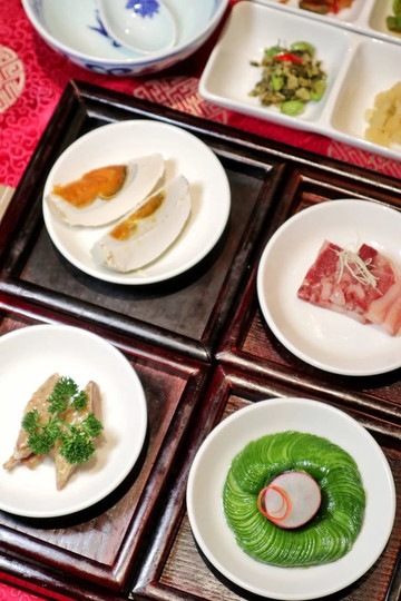 在这顿明清盐商家宴中,你能吃到片如薄翼的黄瓜,也能吃到特选的鸭胸,还能吃到高邮的双黄蛋,以及带麟的鲈鱼、豆芽中釀入发丝细的火腿等等,总之,食材的精致和烹饪的讲究,全都在这顿饭里了。