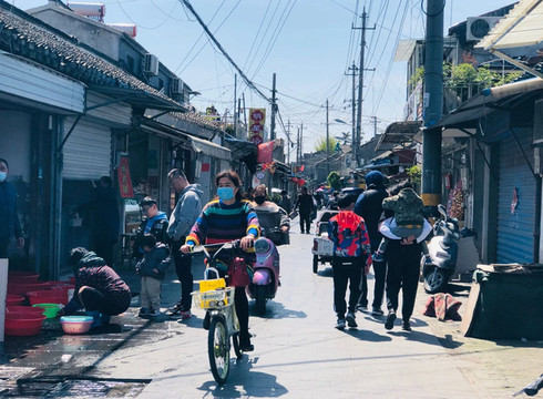 吃罢面,继续往前走,在江南的这座小城里面,随便走动几步,就可以看到这种很有江南特色的亭台楼阁,炊烟有它上升天空的轨迹,卖鱼的老板娘有她固定装鱼给客人的动作,中年大伯的每一次吆喝声都是相似的。此刻,我想我慢慢的体会到了汪曾祺先生所说的这个烟火气,我可以安安静静地坐在这儿一个下午,不受任何人的打扰,经过的每一处人家或者行人,好像每一个人都有自己忙碌的事情,而背包行走在街道上的我显得有些格格不入。但是,对于一个游客来说,被当地人忽视,我也觉得是一种莫大的心理安慰,于是,幸福也就来了。