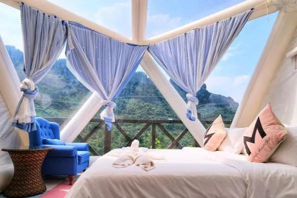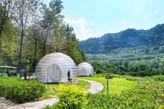 古剑山还有一个山地型露营地,占地面积180亩,配备有完善的营地配套设施,有房车有帐篷有小木屋有星空房还有泡泡屋。