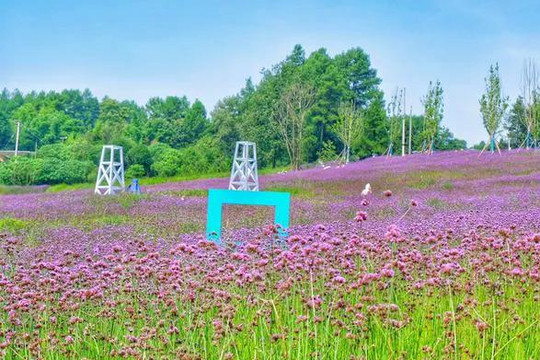 薰衣草?NO,是蓝花鼠尾草,蓝紫的花穗,清香优雅,一片紫色的海洋。柳叶马鞭草的花语是期待,期待是美好的,是值得憧憬的,正如她星星点点地连成一片。