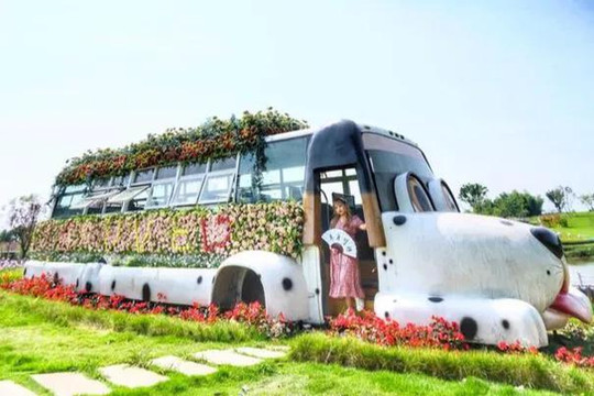 一个趴趴狗形状的车车,里面有餐桌,这里也是一个拍照点,注意距离车身远一点是比较好看。