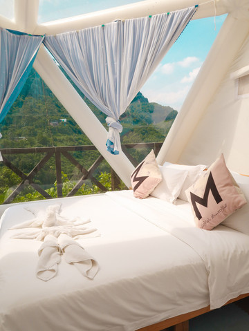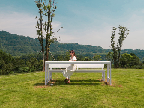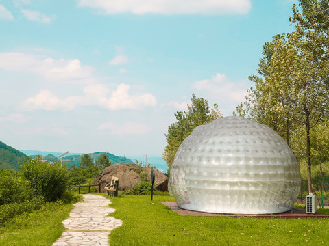 因为当天天气比较舒适,我们选择了在古剑山上住着可爱的圆形帐篷露营,蓝天白云下,远处延绵的青山,近处清新的空气。大好河山尽收眼底,一览无遗,让我不禁想象夜晚的古剑山如果伴着天上的星星和偶尔的蝉鸣,加上舒缓的晚风,是不是会更有“一夜梦游千里月,五更霜落万家钟”的魅力呢。
