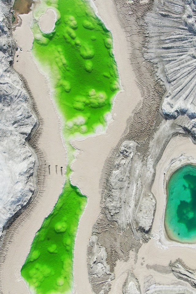 和茫崖翡翠湖不同的是,这里是有许多大大小小的湖泊组成的,并且颜色各不相同,蓝的绿的,深的浅的都有。