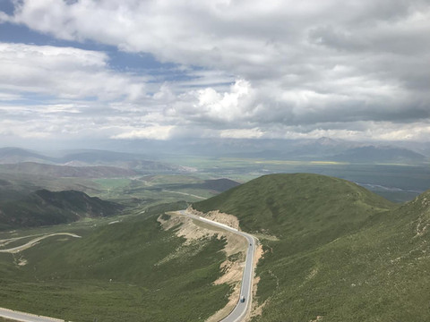 扁都口,一望无垠的绿色田野,可以看到相对于门源来说少许的油菜花,风很凉快,这是到了甘肃与青海的交界,又重新回到了绿水青山的地盘
