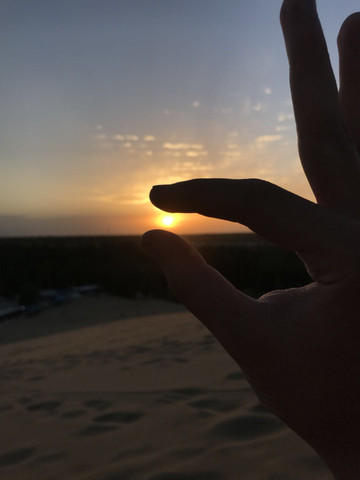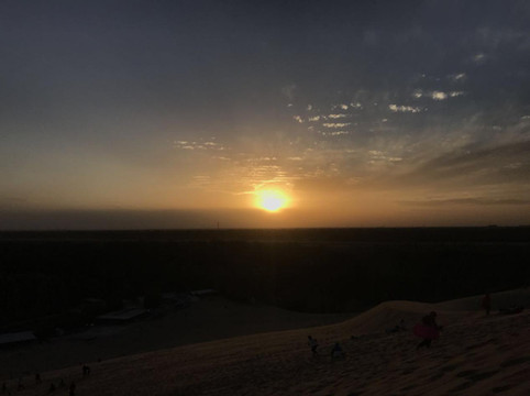 石油小镇的话我没进去就不多说了,在阿克塞县吃了个饭又上路了,晚上6点多钟到敦煌的客栈赶上7点去鸣沙山露营的车,露营一个人$200,包含晚上的烧烤啤酒、沙漠摩托以及可以看到沙漠日落日出还有篝火晚会、沙漠蹦迪等等,如果实在是太累了建议嗨完了之后回客栈住,不过要自己花回去车费以及住宿费,晚上睡沙漠里搭帐篷实在是体验过一次再也不想经历了。但出来旅游还是建议啥都体验一下回去也好吹牛逼。下面附上几张日落的图吧,日出因为晚上狼人杀到3点实在是不想起来爬沙漠上去看日出了,爬沙漠往下陷还往下滑比较累。