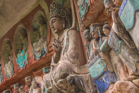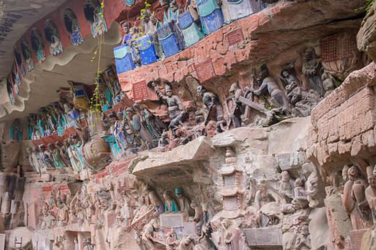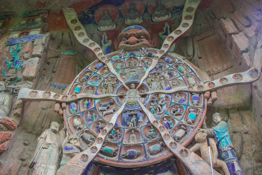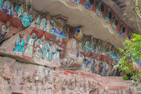 2019年8月4日,从乐山出发,沿隆汉高速、广泸高速,经自贡、泸州进入重庆市,行驶250多公里直接达到大足宝顶山石刻。午后大雨倾盆,仍然冒雨去北山石刻。