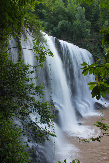 现在也常常想起腾龙洞,每每想起,就感觉恐怖,诡异。从仙女山下来,到达丰都县,路过白玉洞(中国最美的五大溶洞之一)。经银白高速、沪渝高速,170余公里,到达利川郊外的腾龙洞。进入湖北境内,就开始淅淅沥沥地下起了雨,到达腾龙洞时,小雨竟然演变为倾盆大雨,腾龙洞暂时停止售票。大约1小时后,大雨停息,方才能入洞参观。腾龙洞包含旱洞和水洞两大洞,旱洞是清江古河道,水洞是清江新河道。一个多小时的大雨,使清江河水暴涨,流水到达腾龙洞时一下子收紧,好像是被卡住了脖子,形成的跌水,波涛汹涌,浪花翻滚,水汽腾空,声音震天,有雷霆万钧之气势。黄浑浑身躯、白花花龙头的清江,在这里挣扎着、翻滚着、咆哮着,就这样被腾龙洞的黑洞收入地底下去了。这是多么恐怖、诡异、震撼的自然景观呀,比起云南虎跳峡,有过之而无不及。旱洞洞口巨大,据说可以可以起降直升飞机,两线瀑布从洞壁飞泻而下,形成“二龙吐水”的奇观。从洞内往外看,高大的洞门,洞门的倒影,“二龙吐水”,洞外草坪,远处青山,构成了一幅绝美画面。洞口有观光车直达旱洞深处的灯光秀,再往里边就不是游客所能探究的了。