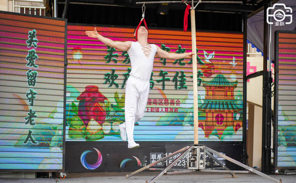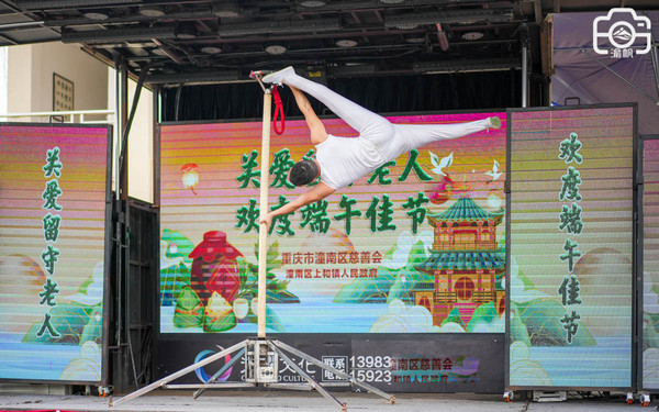 如果说粽子是物质上的慰问,那些这些精彩的节目则是精神上的温暖,老人们都看得很认真,时而是应节的歌曲,时而是传统的舞蹈,时而是精彩的杂技,又或者有趣的小品,都是老人们喜欢的内容。