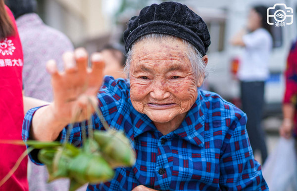 上图这位89岁的郭朝秀婆婆,手脚已不利索,但看到大家都包得起劲,也忍不住要试着包上两个,她用吐字不清的声音告诉我们,十几年都没有包过粽子了,今天能借这个慈善活动的机会感受一下,仿佛又找回到一二十年前的时光,人都感觉年轻一些了。