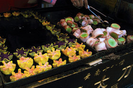 不远处就是七一街,有名的小吃一条街,每种小吃都是10元起我塞了一嘴的东西正吃着来劲呢,杜同学非要给我拍照这是猜字墙,很多都是象形字,挺有意思的