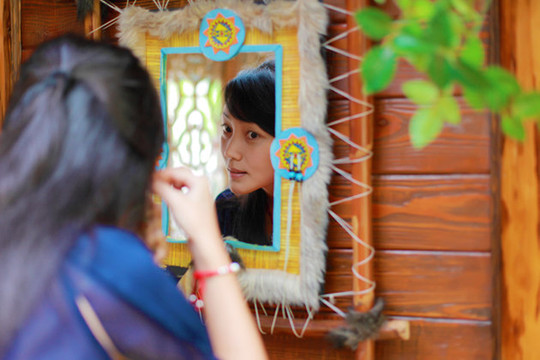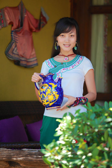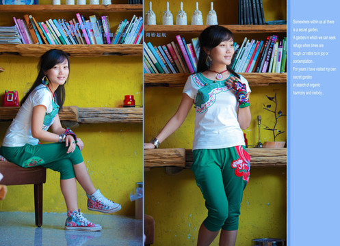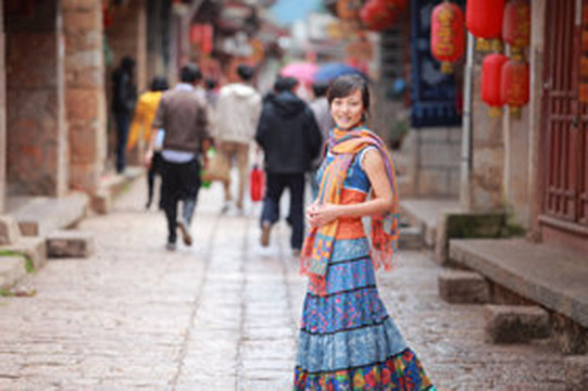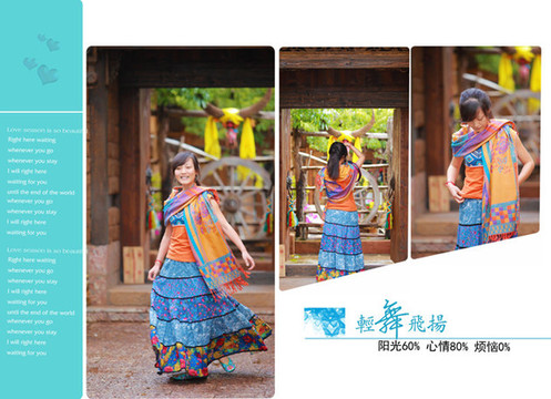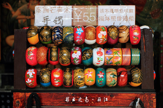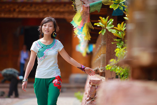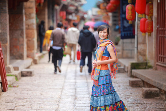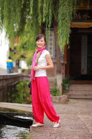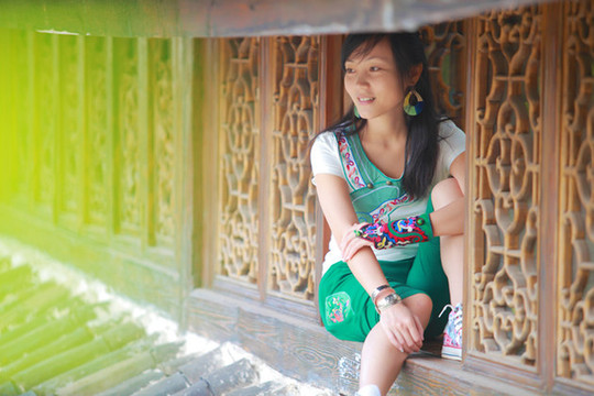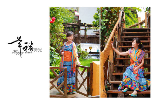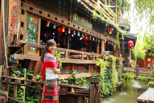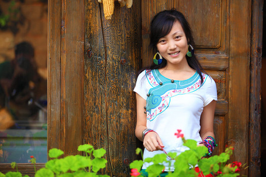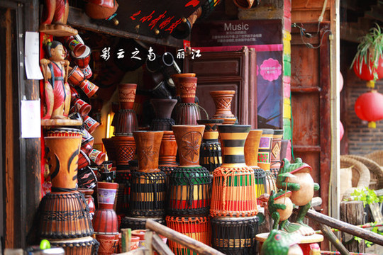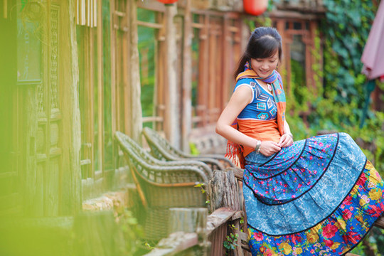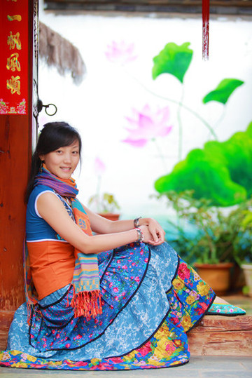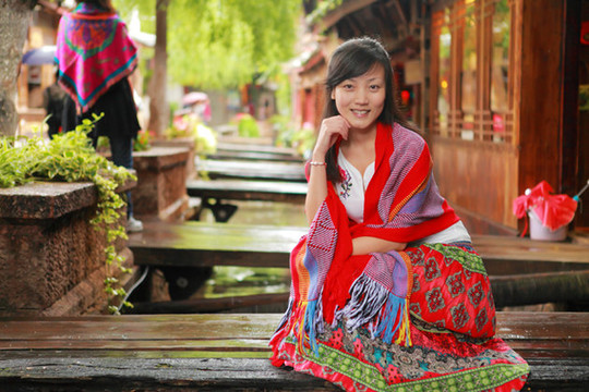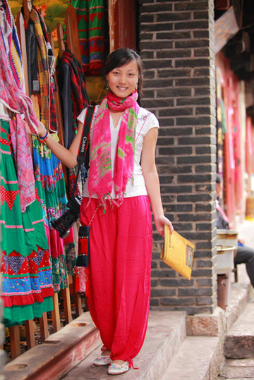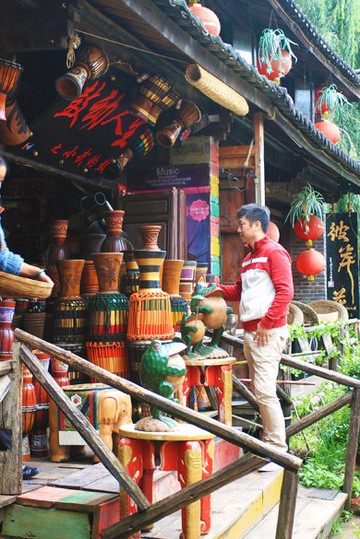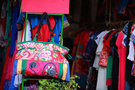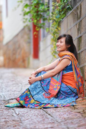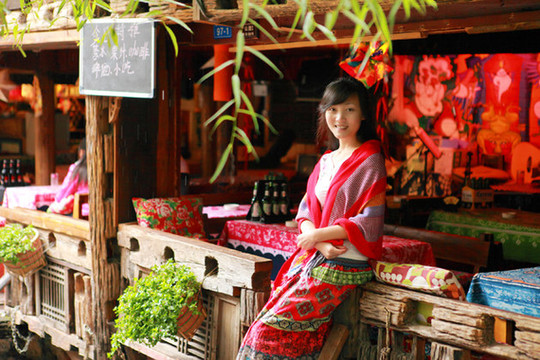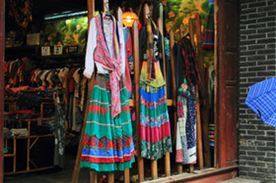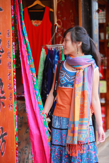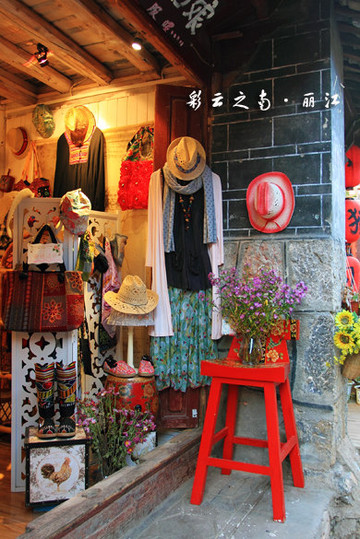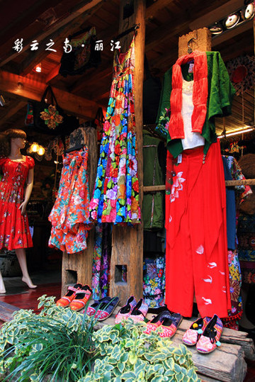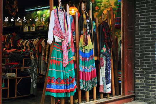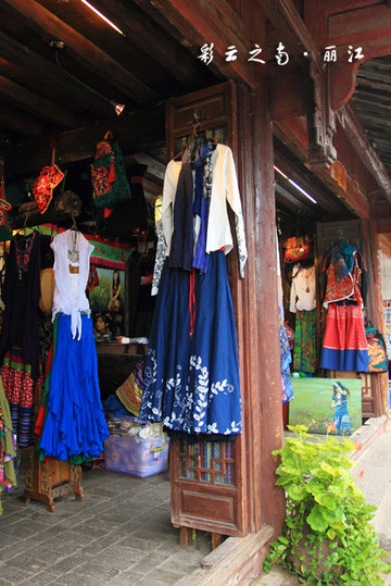 丽江已经非常商业化了,大多数的门头都是卖茶叶啦、披肩啦、非洲手鼓、首饰----像这样特色的民族风服装,也不算特别多买了几件比较心仪的,准备拍照时穿
