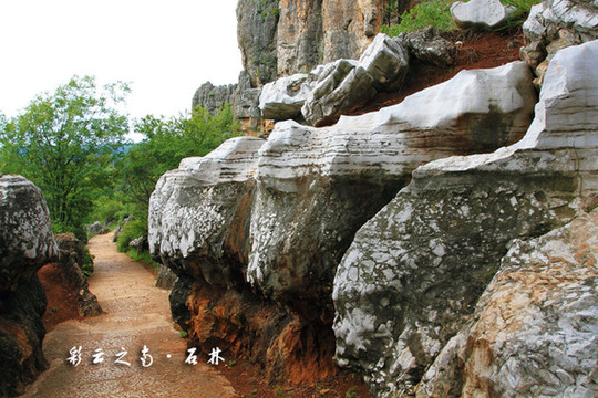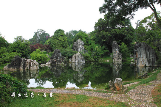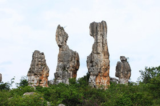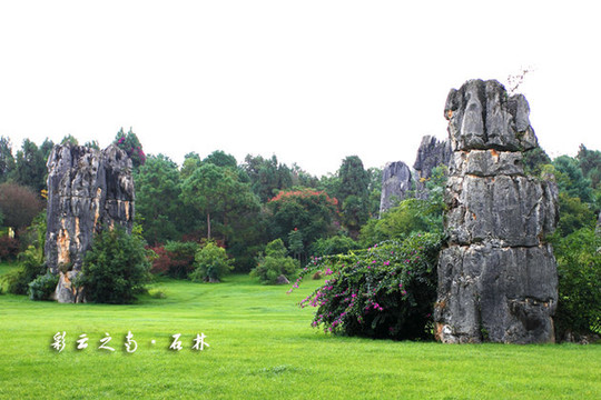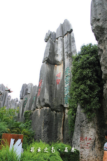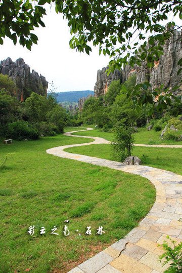 绕小路又回到石林景区的起点处,坐着电瓶车,开始游览石林的外围景点外石林主要指位于大小石林之外的周围风景区。这片风景区方圆数十里。在野岭荒山,鲜花绿树丛中,又有许多奇峰怪石点缀其间。这些异石个体庞大,形象生动,加上周围环境生机勃勃,视野也较为开阔,游览又别有一种情趣和感受