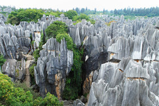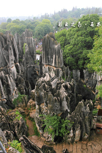 首先进入的就是所说的“大石林”景区大石林的石头很密集,左转右扭的,顺着台阶开始爬山了据说能看到石林的全景(跟着一个导游走,不吃亏,要不石林内300多个岔路口会迷路的)