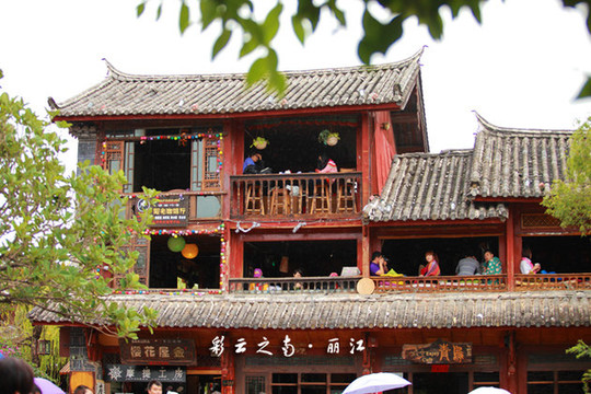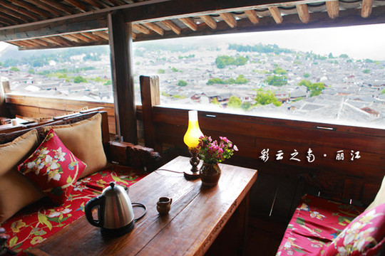 最喜欢这间客栈,是因为他有着一个二层的小观景台,坐在这里品茶,看着古城的全貌真是一种享受两天时间,在这里竟然泡了一天半这是二层的观景台,半封闭的结构,在雨季里真是把我冻的不轻啊裙子里边套的裤子,裤子里边套的还是裤子衣服外边穿衣服,衣服外边穿毛衣,毛衣外边两层披肩呵呵,就是跟过冬一样但是看到这样美丽的景色,认了吧