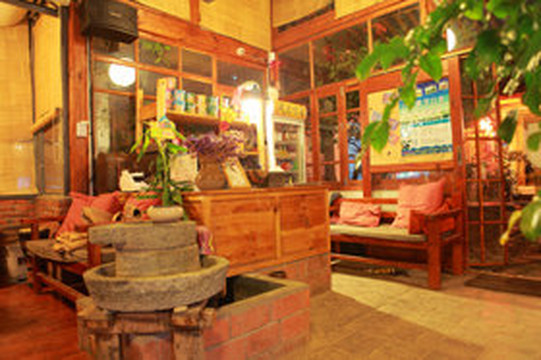 从束河古镇飞花触水的路口,拐进一条深深的巷子,眼前是豁然开朗的丽江束河情人结客栈。(小巴黎酒吧停车场后100米)交通很方便情人结正门口处