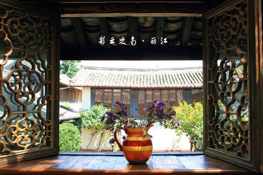 从窗户看出去,对面房顶上的灰瓦有序地排列着,古朴自然,院子里的景色一览无遗