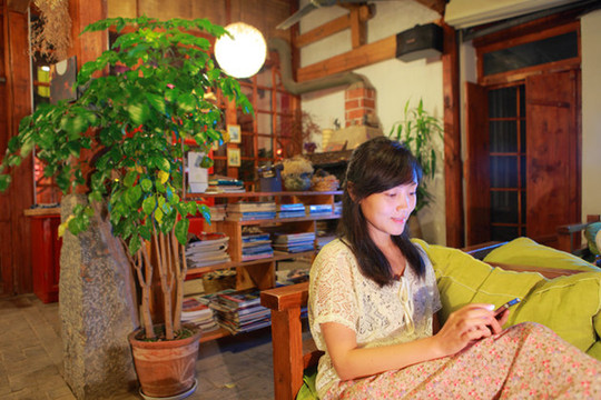 晚上的休闲区也很美,有上网区、电视区、品茶区