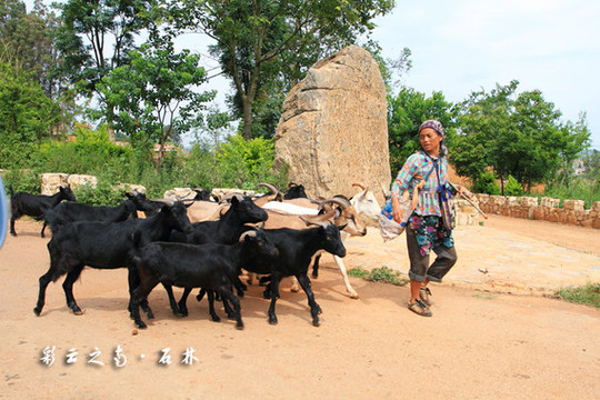 乃古石林位于“石林”以北13公里处,“乃古”彝语意为黑色,“乃古石林”即黑色的石林与“石林”相比,这里又是另外一种特色和风格。路上看到的小羊