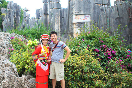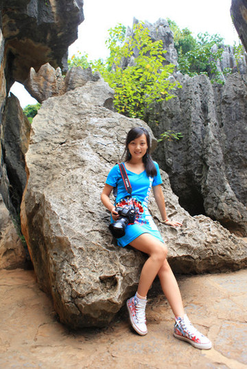 在石林标志性景点拍了些照片,就退了服装,准备逛景区了这里叫“良心石”,据说做了亏心事的人是不敢站在这块石头底下的整块石头只有6个支撑点,不知道牢固不