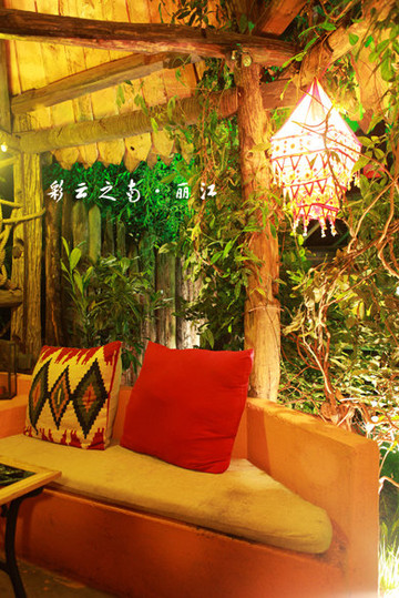 床头上柔白的纱幔轻垂,宽大的客厅里,咖啡色的真皮沙发、特制的用犁田的犁做的躺椅、精美的印度手工羊毛地毯、榻榻米式的床榻上,都能让你充分享受这份娴静和雅致